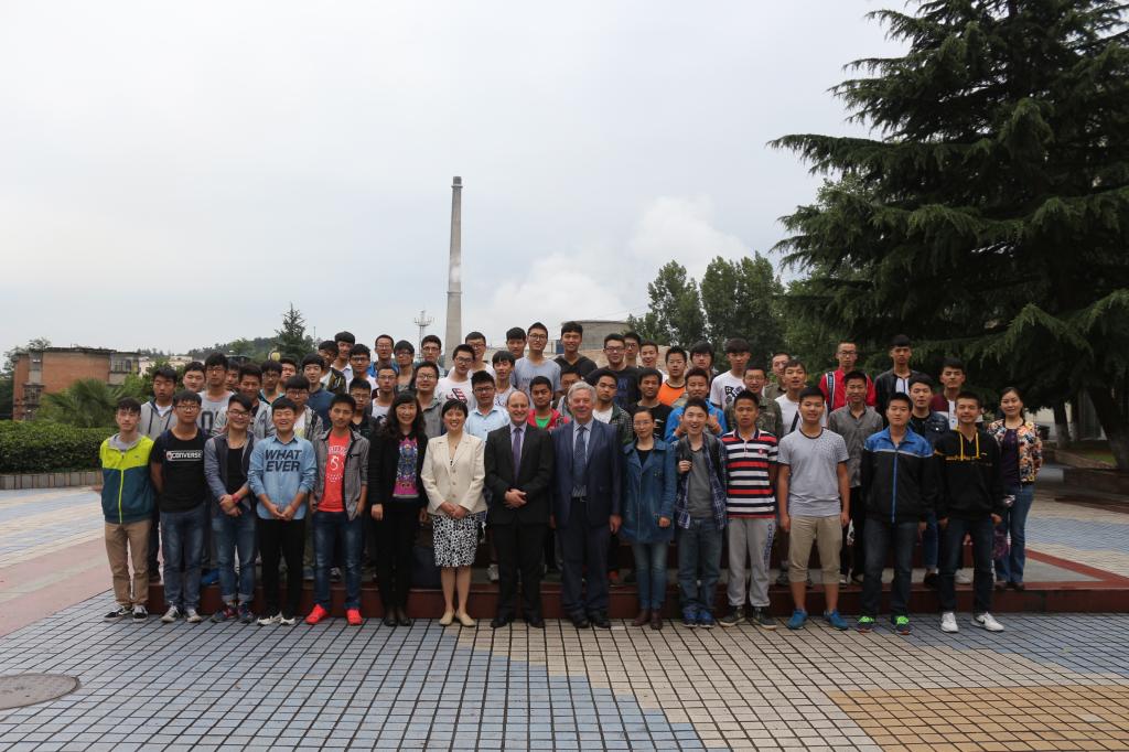 院长通过宣传视频,从地理位置、图书馆教学设施、学生会组织运行情况、运动场地、餐饮条件等方面为中方学生详细介绍了博尔顿大学。他重点给同学们介绍了博尔顿大学在建项目——车辆研发实验室。他鼓励同学们学好英语,提升专业水平,努力获得出国深造的机会。介绍结束后,他就如何成为一名工程师与同学们进行了相互交流。