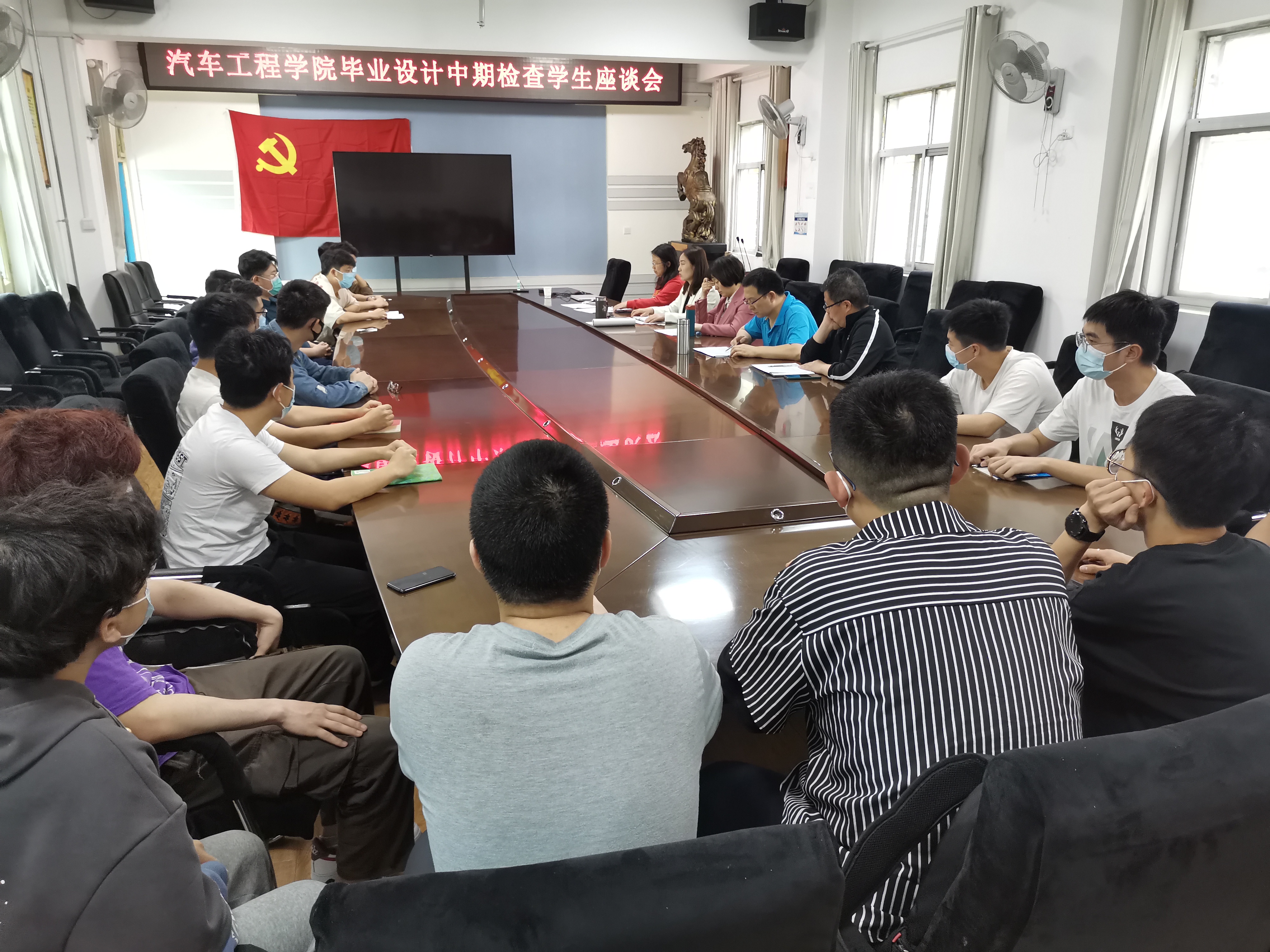 于第8-9周进行了毕业设计中期进度反馈与自查工作,并于4月27日下午召开了毕业设计中期检查学生座谈会。座谈会随机抽取了20位学生代表,由华体会体育