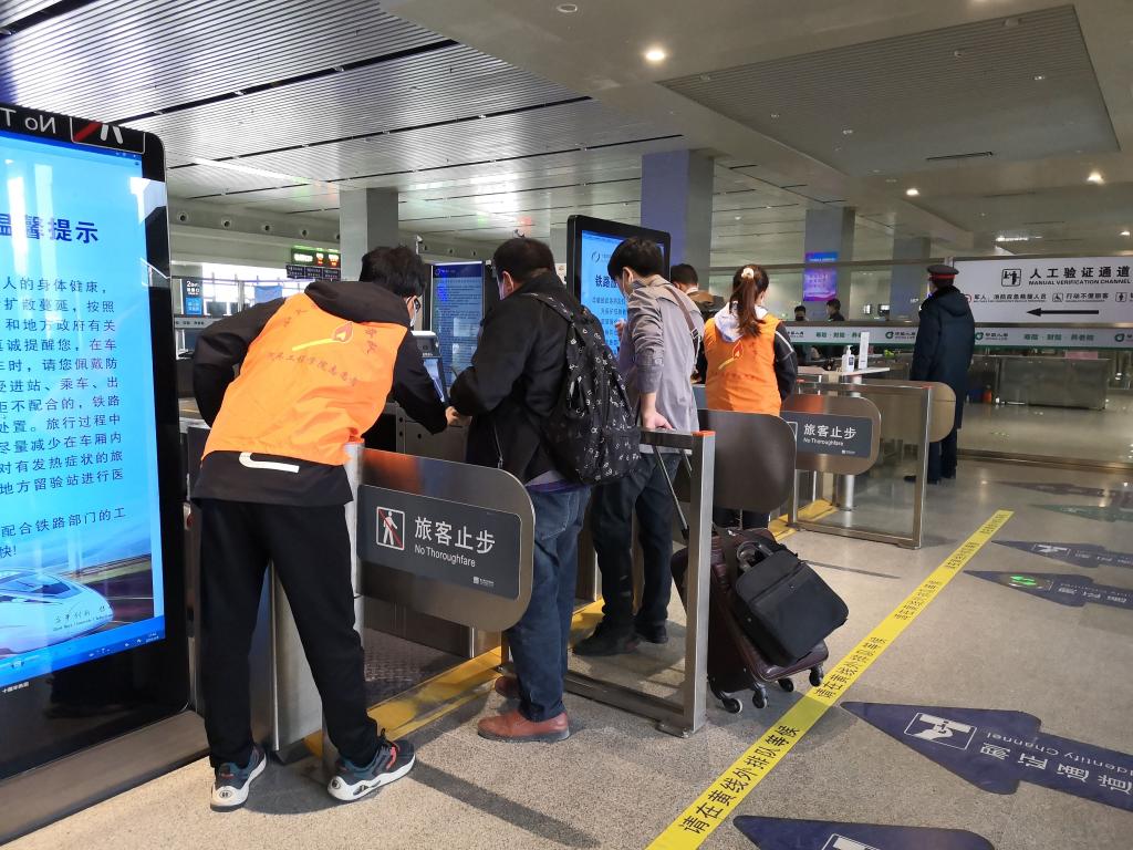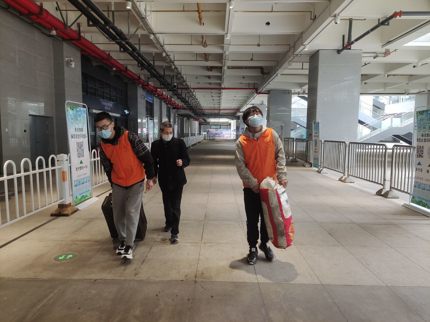 组策部部长李容容在线上腾讯会议召开了一个简短的培训会议,给招募的志愿者讲解了这次活动的任务并且一同观看了志愿者行为规范的短片。随后,小火柴们统一着装,乘坐公交车抵达火车站,在工作人员的安排正式开始此次志愿服务活动。带队负责人根据现场情况分配人员,让小火柴们分别驻扎领票口、进站口、出站口以及楼梯通道。无论是领票口负责协助旅客取票,进、出站口负责人员流通以及进出接行,还是楼梯通道负责帮助需要的旅客搬运行李。每一位志愿者都驻守在自己的岗位上,积极完成任务,服务周到,经过三个小时的志愿活动,每个人都很疲惫但也依旧面带笑容。活动途中,一位盲人大爷挎着大包小包在机组人员的带领下缓缓走向出口站,接待处的小火柴们了解详情后,耐心而又细致地搀扶爷爷并协助搬运行李,一路上提醒爷爷道路前方障碍,在与司机商量好价格后,目送着爷爷上车,这一幕也赢得了过路旅客们的一致好评。