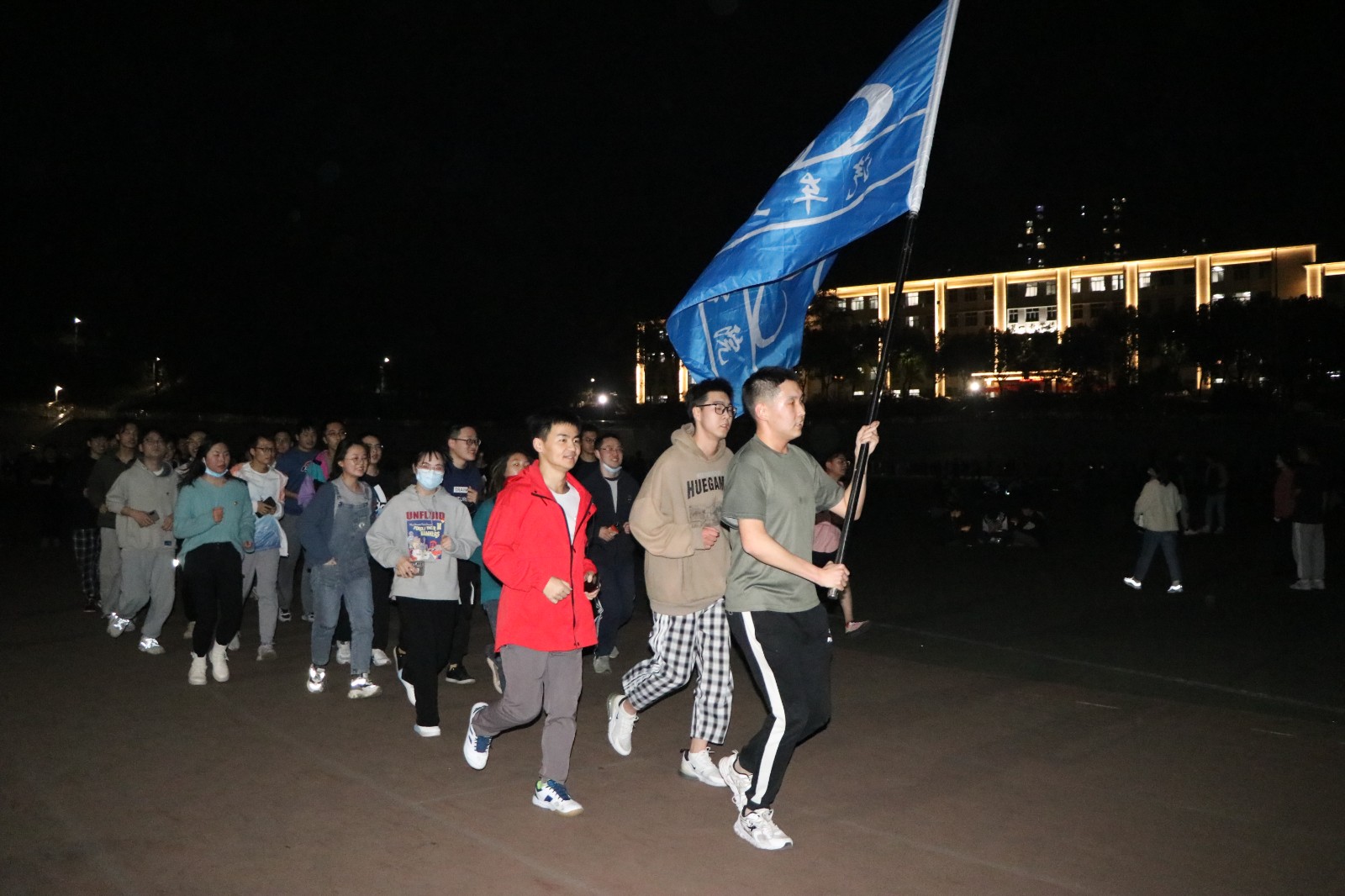 的统一组织下,车院师生热烈响应、积极参与。学工办李旭和邱天宇老师带领学生党员与学生会干部列队奔跑,发挥先锋模范作用,他们步伐整齐,手持院旗,在田径场勾勒出青春活力的弧线。