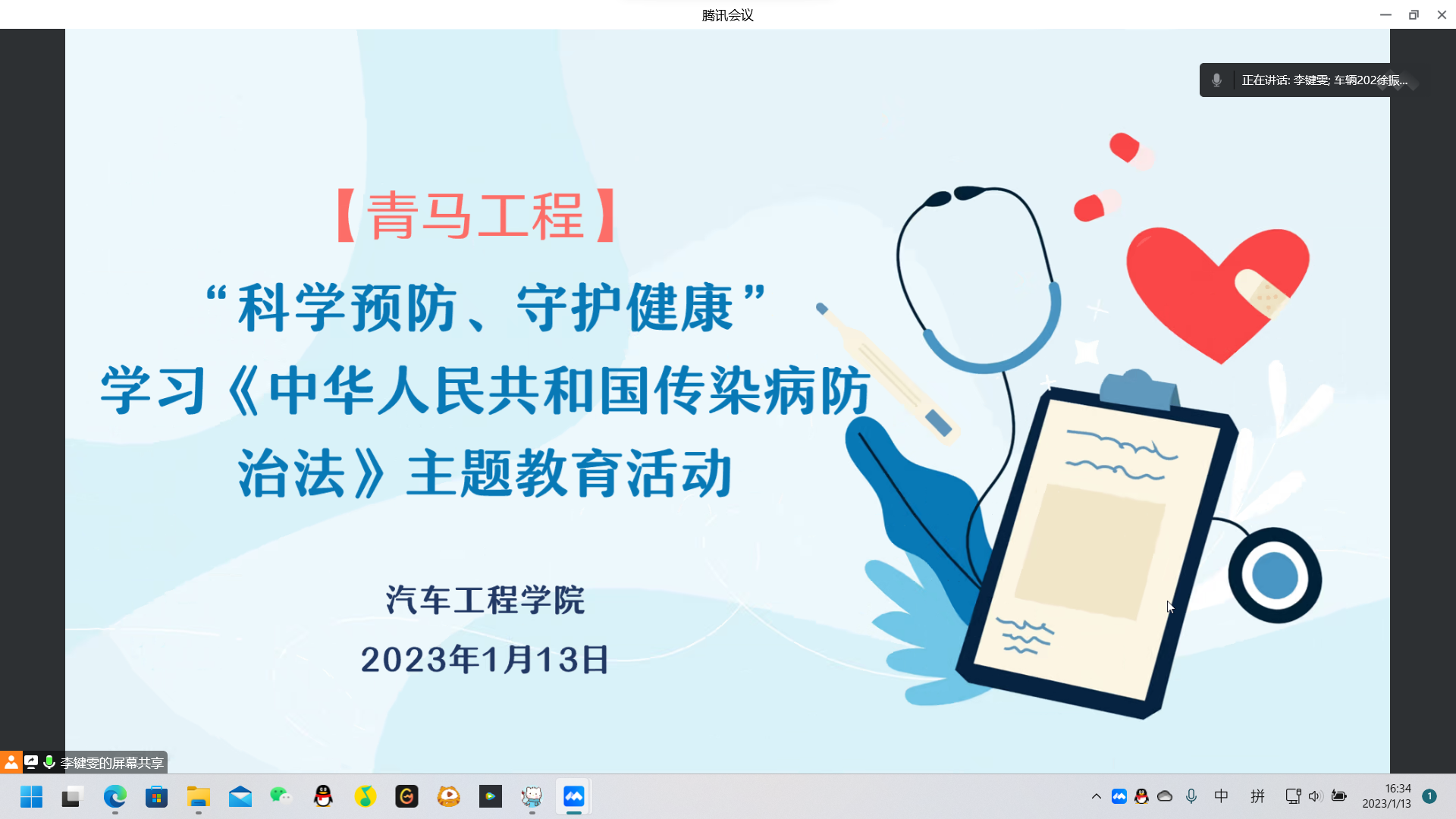 开展“科学预防、守护健康”主题教育活动,组织学生会全体学生干部线上集中学习《中华人民共和国传染病防治法》,辅导员李键雯担任本次活动主讲人。