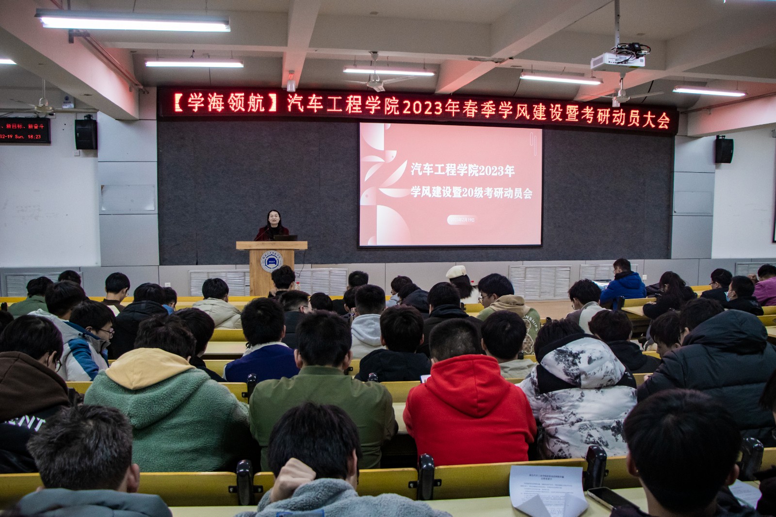 于6113报告厅开展了2023年学风建设暨20级考研动员会。分党委副书记杜昕俊、学工办主任胡霄寒、辅导员李旭以及20级全体学生参会。