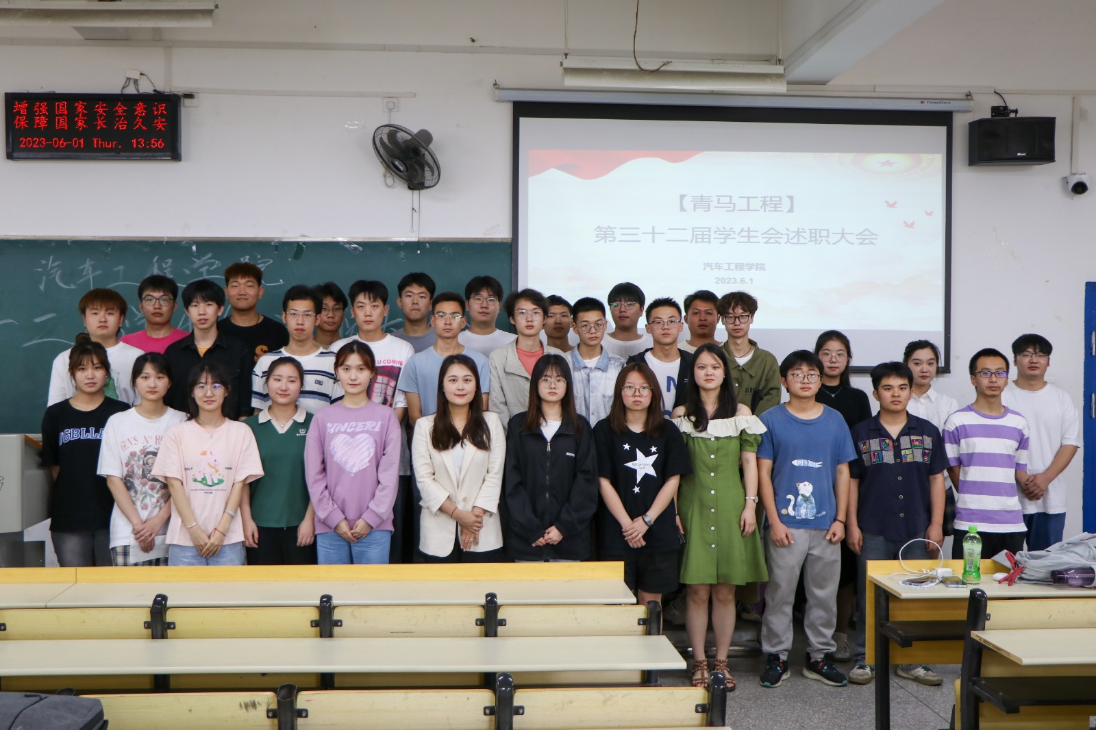 于6月1日中午在6211教室举办第三十二届学生会述职大会。分团委书记李雅琨,学生会全体成员参加了此次活动。