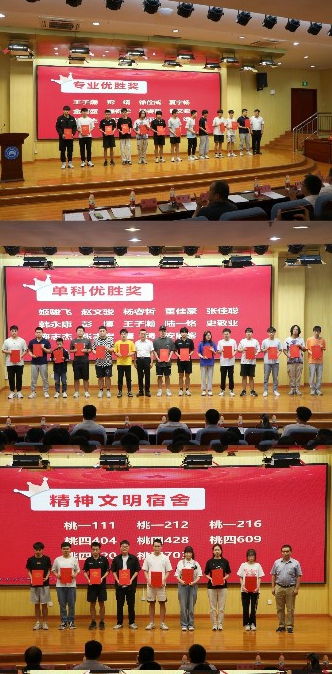 班子成员及辅导员为获优秀个人和优秀集体学生代表颁发了荣誉证书。