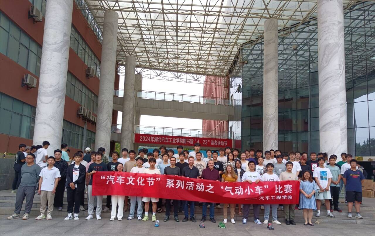 在图书馆门口顺利开展了“汽车文化节”系列活动之“气动小车”比赛。华体会体育