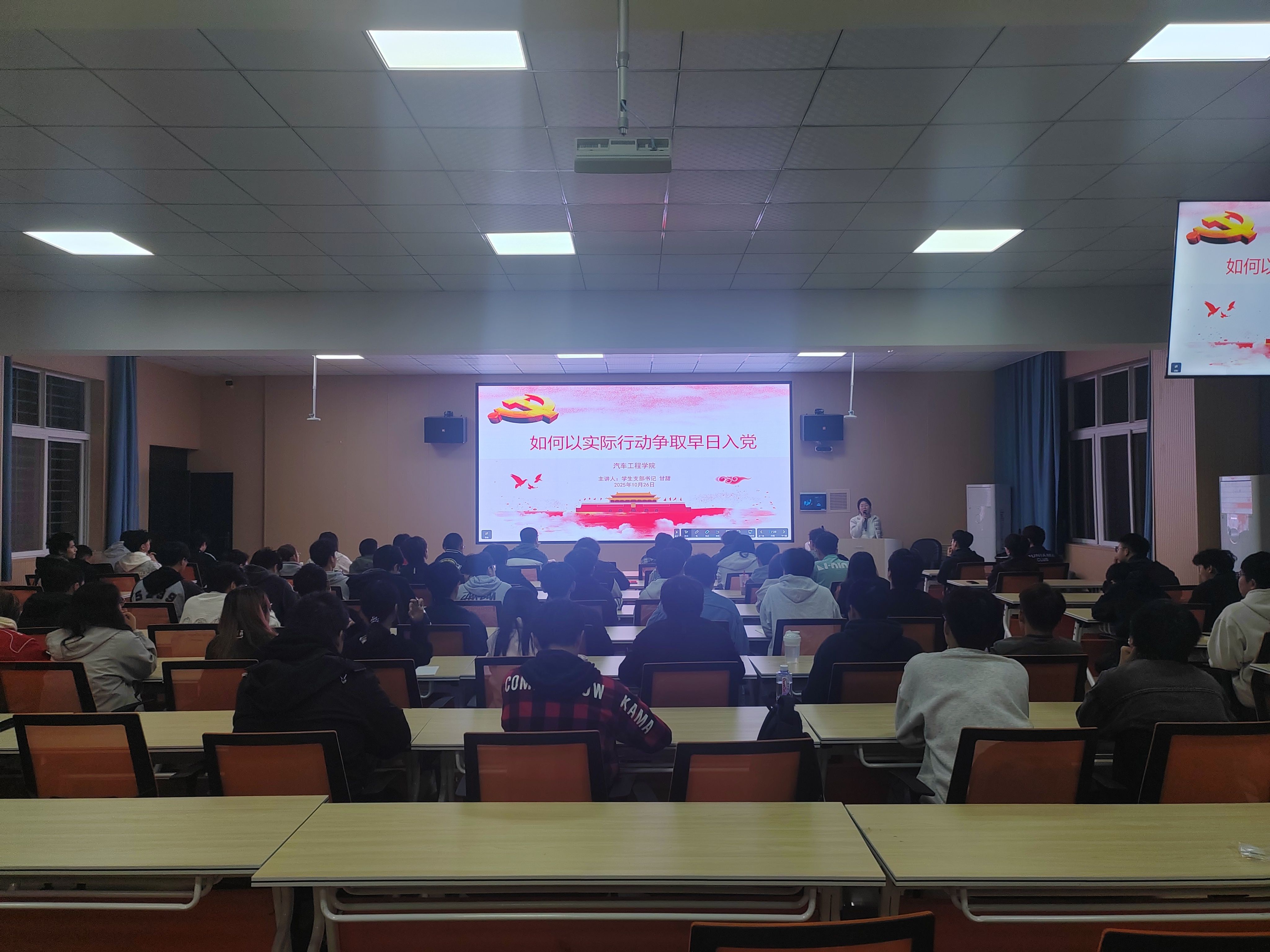 在教职工之家举行2025年秋季入党积极分子专题培训班。学院学生党支部书记甘甜主持本次培训,学生党支部委员及拟发展的50余名入党积极分子参加。