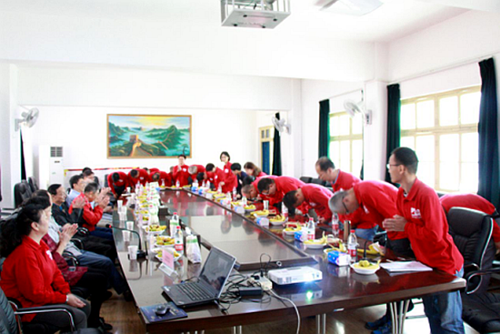 会议室,所有校友在当年的入学名册上一一签名,之后与肖生发、严钦容、缪兴纯、胡运康、戴家谦、吴云存、李俊玲、李惠、沈琳等老师相聚一堂,共同回忆当年求学时的美好时光。校友们向老师们汇报了毕业后的工作经历和取得的成绩,并向老师们深深鞠上一躬,以此感谢老师们当年的谆谆教诲和细致关怀。
