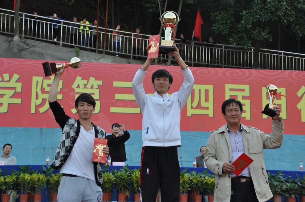 “那个时候还小啥也不懂,就是喜欢动,像什么爬树呀,掏鸟窝,捉知了等等,我小时候特喜欢干。后来上学五年级的时候学校举办运动会,我就抱着试试的心态报了个跳高,没想到当时跳的还不错拿了个一等奖”,姜帅学长充满感情的和我们聊了聊第一次参加运动会的场景。自从那次运动会中发现自己在体育方面有一定的潜力后,在以后的每年里他都会参加校运会,从小学到初中再到高中甚至在大学从未间断过,并且都取得了一定的成绩。“最有趣的是每年我的跳高成绩总是会和身高相错那么一点,我到现在还记得,每年我长个几零米,我能跳过的高度也上升多少,但是基本没有超过身高,差不多快成等差数列了,哈哈,不过有一次是在高中时参加的一次运动会里,跳高高过了身高一点,那也是我跳的比较好的一次了”,学长面带微笑的给我们讲了他当年和体育一起的那些事,有欢笑有泪水,但更多的是人生中那些和体育密不可分的快乐回忆!