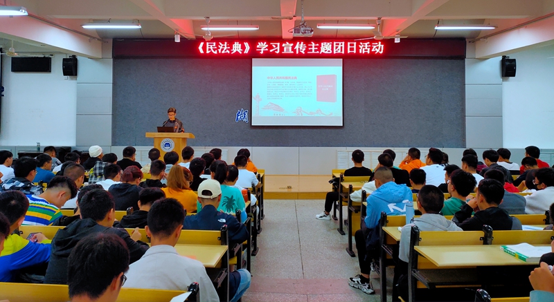 于6113报告厅开展了《中华人民共和国民法典》宣传学习主题团课活动,分团委副书记杜新宇、20级近300名新生共同参加。