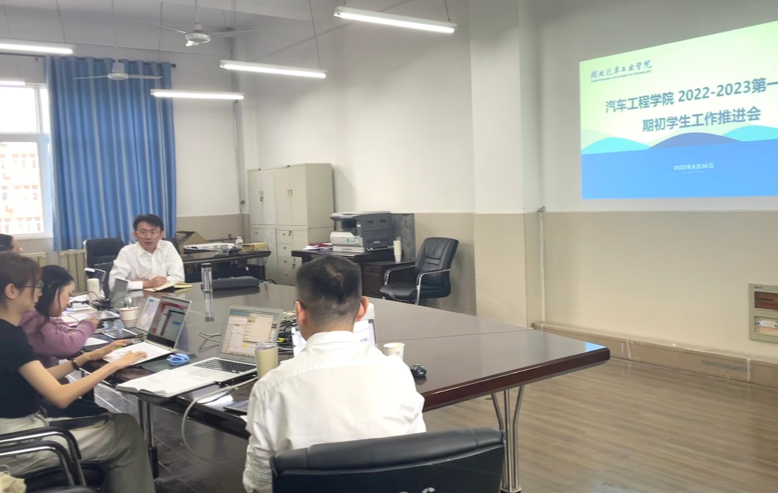 学工办在学院实验楼402会议室召开学生工作会议,总结了暑假期间学生工作各版块成效,并部署了2022-2023第一学期期初重点工作。分党委书记李秀峰、副书记杜昕俊以及学工办全体辅导员参加了此次会议。