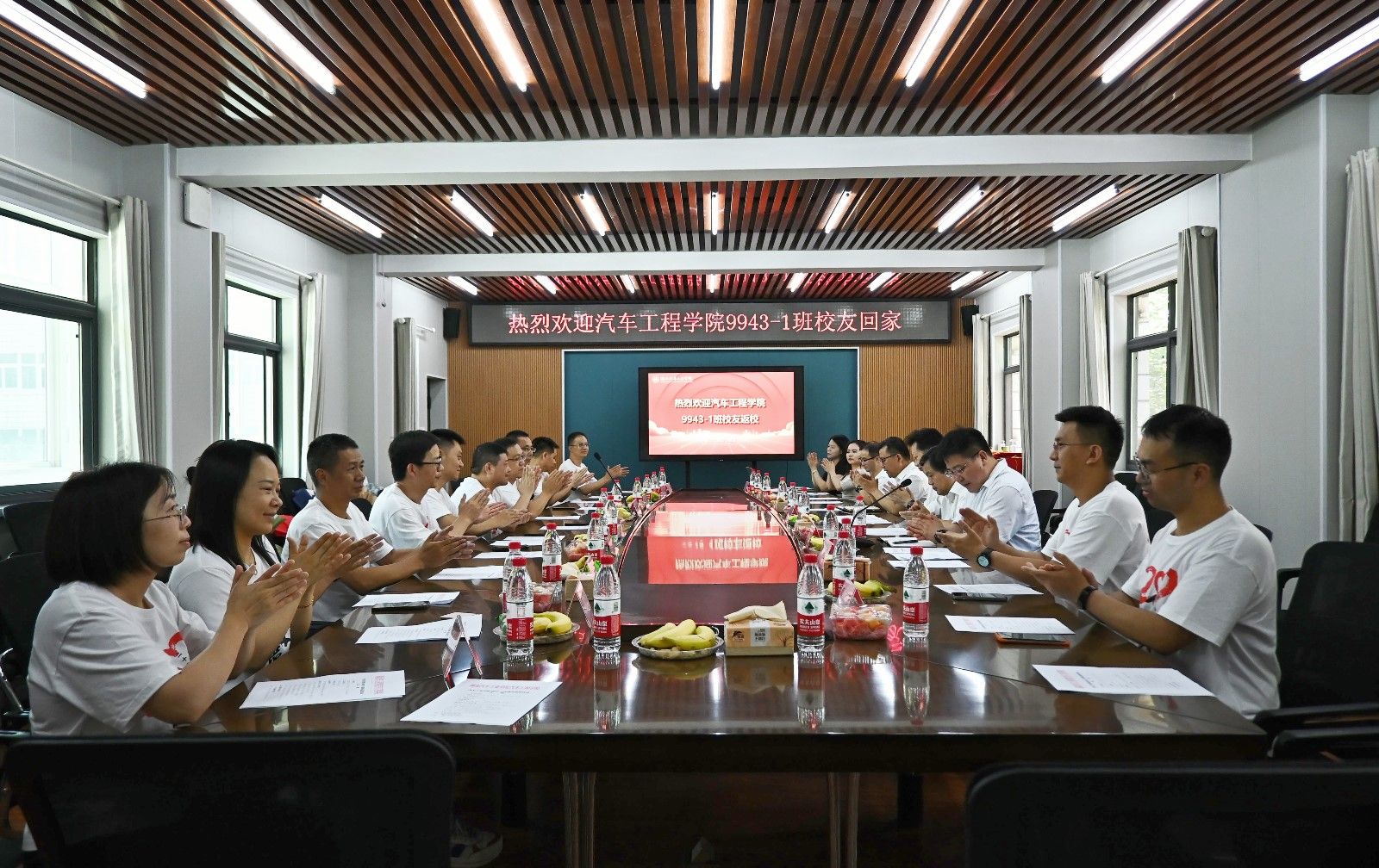 胡明茂代表学院对各位校友的返校表示热烈欢迎,并向校友们以多种形式关心、支持母校的建设发展表示诚挚的谢意。原刃锋向大家介绍了学校近年来发展情况,校友工作的组织开展情况,介绍了新校区建设规划与进程。作为9943-1班班主任,李正桥与校友们一同回忆起求学时的点点滴滴,不少校友为之动容。当了解到大部分校友都在东风、上汽等车企任职时,李正桥嘱托大家,持续关注母校的发展,为学校导入更多科研、技术等资源,为母校早日更名大学做出贡献。