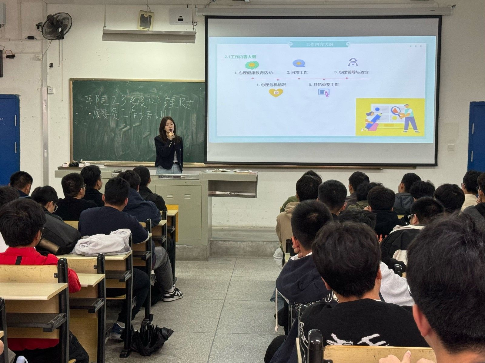 始终重视心理育人队伍建设,时刻为学生心理健康服务提供有力保障,多次组织教师及学生干部开展心理健康专业培训。学院后期将持续完善心理健康体系,为推动《全面加强和改进新时代学生心理健康工作专项行动计划》工作的开展提供不竭动力。(审稿 周彬)