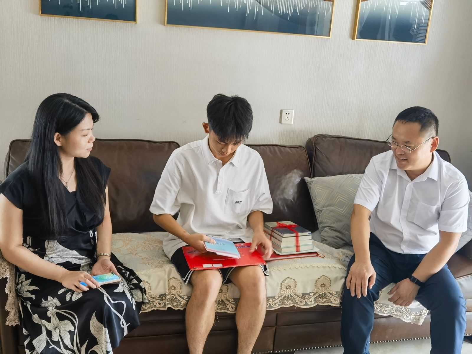 分党委副书记周彬及学院2023级新生辅导员李雅琨等一行化身“邮递员”,历时三个多小时从十堰赶到枣阳市,将录取通知书和精心准备的“大礼包”,亲手送到了华体会体育