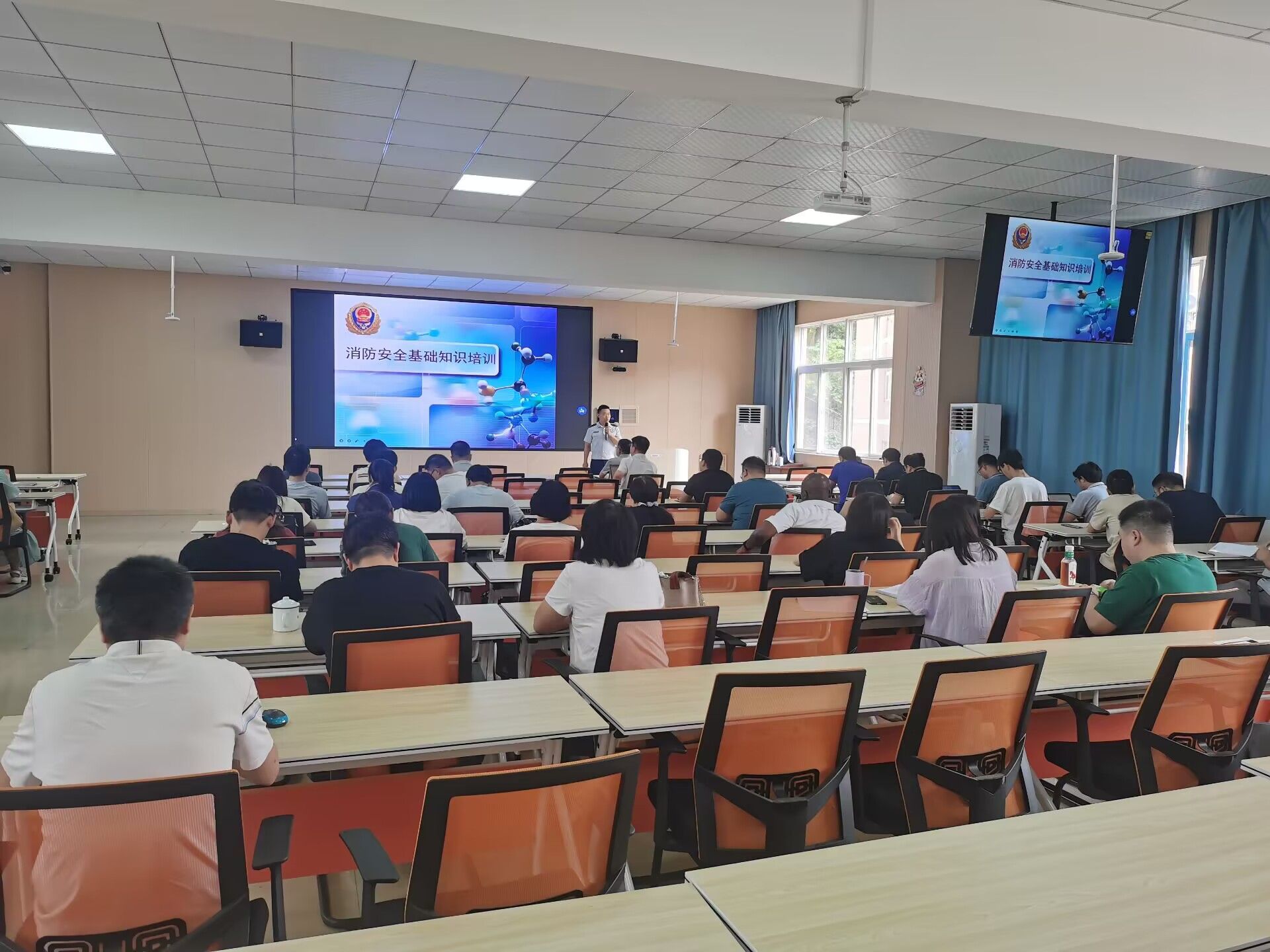 讲座上,消防大队的专业讲师结合实际案例,向出席的教师们介绍了火灾的发生原因、火灾防范措施以及火灾逃生自救方法。通过生动的讲解和视频展示,深入浅出地向教师们传达了消防知识,引发了他们对消防安全的重视和关注。