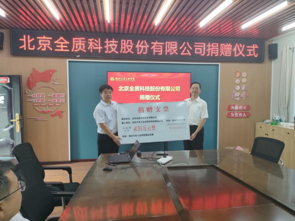 胡明茂对北京全质科技股份有限公司对学校的慷慨捐赠表示感谢,同时也对学校的发展和双方的合作充满了信心。