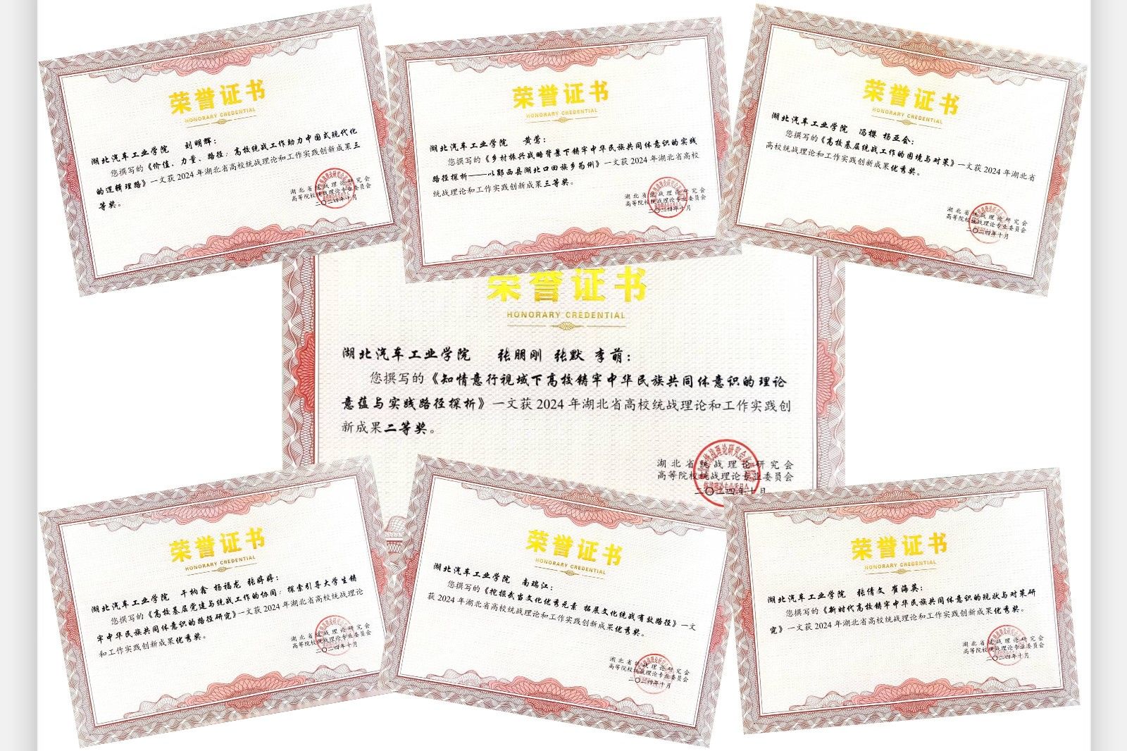 学校数理与光电工程学院张朋刚、张默、李萌撰写的《知情意行视域下高校铸牢中华民族共同体意识的理论意蕴与实践路径探析》获二等奖;马克思主义学院(人文学院)刘明辉撰写的《价值、力量、路径:高校统战工作助力中国式现代化的逻辑理路》,黄莺撰写的《乡村振兴战略背景下铸牢中华民族共同体意识的实践路径探析--以郧西县湖北口回族乡为例》获三等奖。此外,机械工程学院张倩文、崔海英,华体会体育