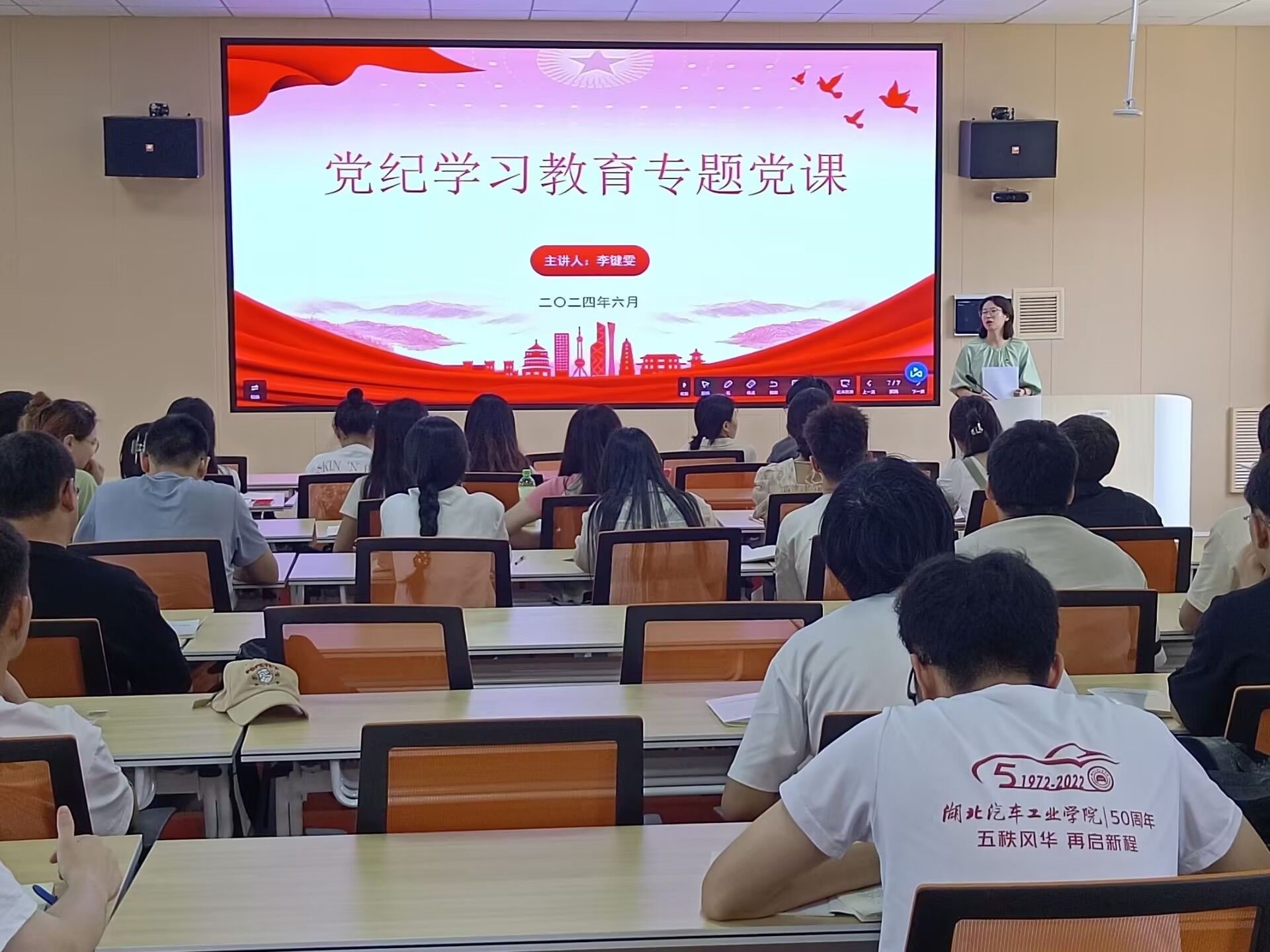 学生党支部书记李键雯主讲,围绕党纪学习教育的主题展开。活动开始,李键雯强调了党纪学习教育的重要性和紧迫性,指出全体党员要准确把握目标要求,做到精心谋划、常学常新。同时,要求大家明晰纪律基准底线,做到以学促行、以行践学,确保将纪律要求内化于心、外化于行。