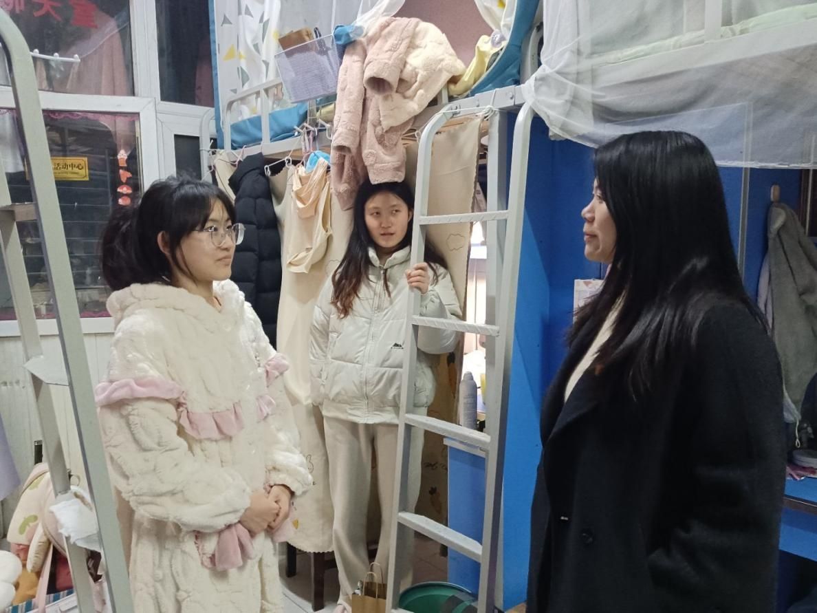 走访过程中,老师们细致询问同学们寒假社会实践与返乡见闻,重点了解学生返校后的身心适应情况,针对学业规划、科研参与、就业准备等个性化问题给予指导建议。党委书记杨亚会特别鼓励同学们:“要把握春季学期‘窗口期’,在夯实专业基础的同时,积极参与学科竞赛和文体活动,通过科研项目提升创新思维,依托体育锻炼锤炼意志品质,实现全面发展。”