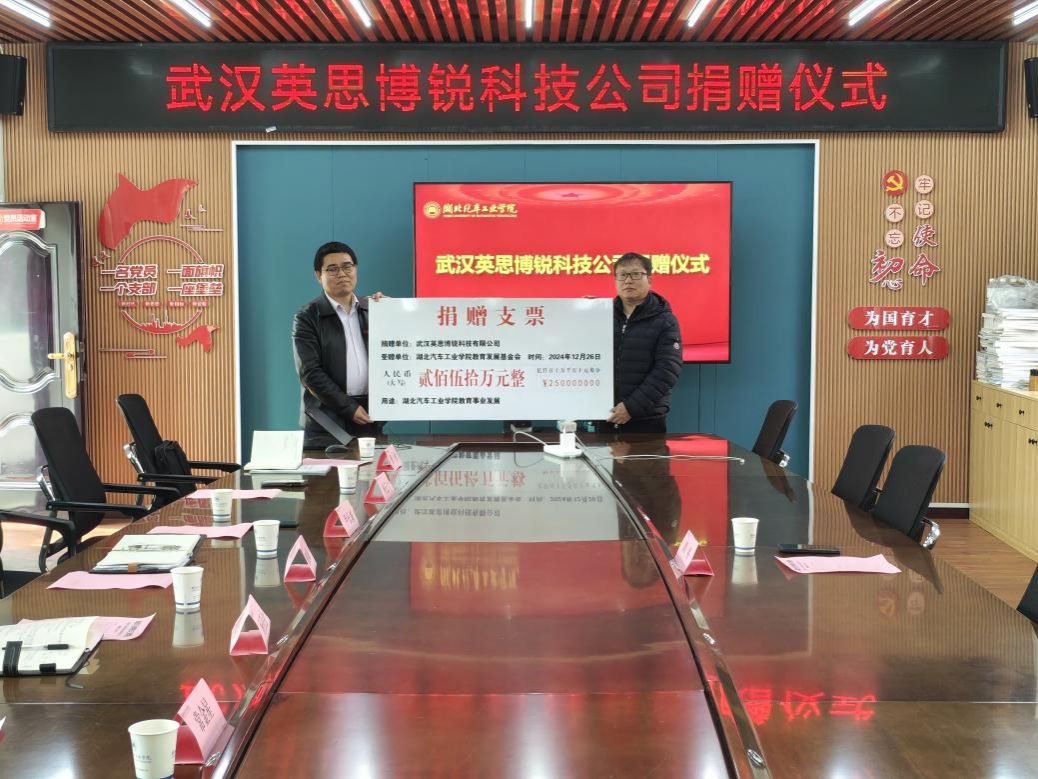 会议室举办了武汉英思博锐科技有限公司向学校捐赠250万元的捐赠仪式。该公司负责人、华体会体育