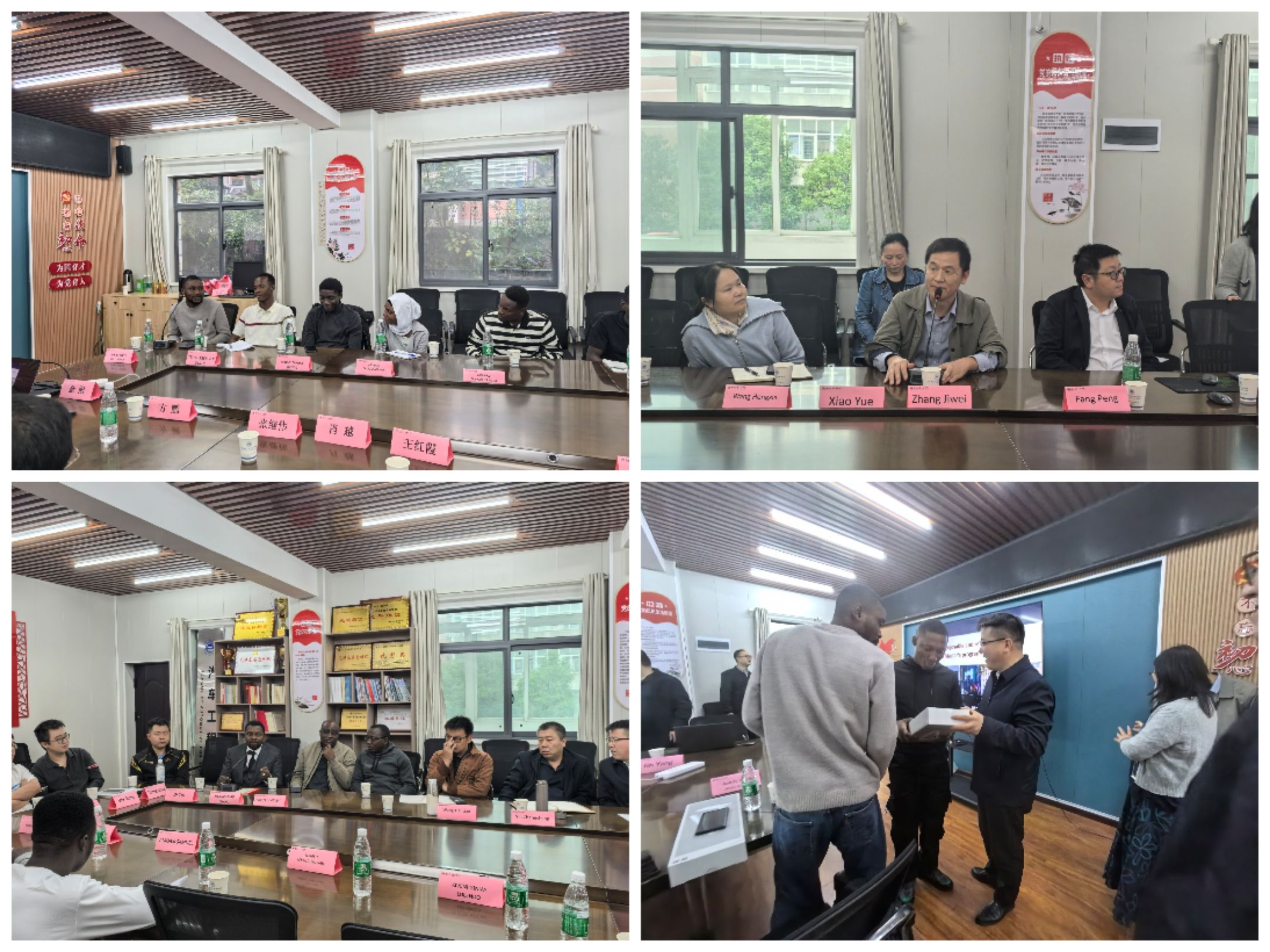在交流环节中,2025级10位外籍研究生依次发言,分享了入学感受与学习计划。多位导师随后发言,就科研方向、课题选择等给予指导,鼓励新生积极融入学术团队。华体会体育 领导再次致辞,强调将全力支持外籍学生的学习和生活,并为他们赠送了台灯作为纪念礼物。