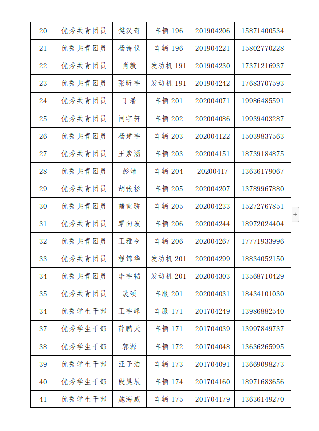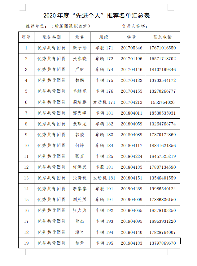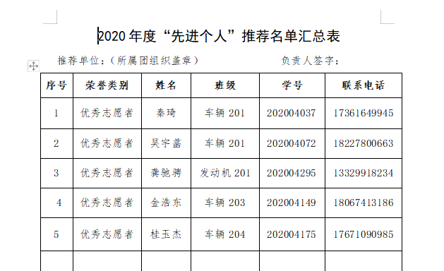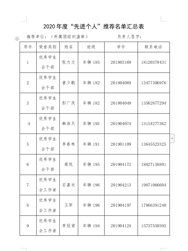 2020年度“先进个人”推荐名单汇总表-华体会体育 学生会.docx