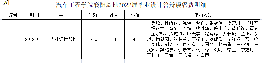 华体会体育 襄阳基地2022届毕业设计答辩午餐费明细