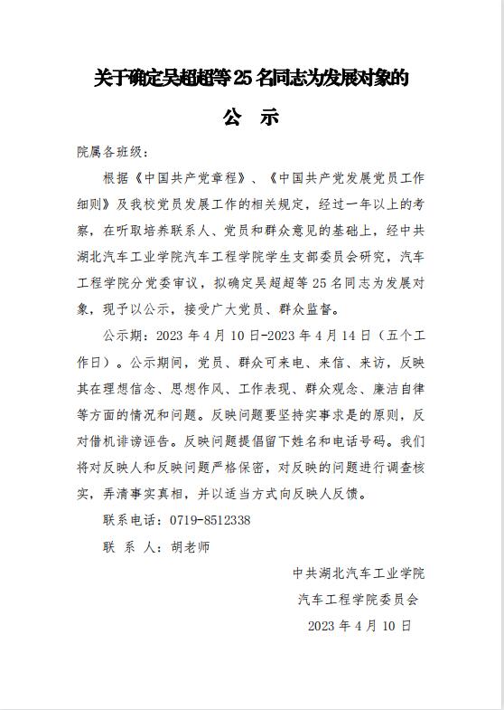 关于确定吴超超等25名同志为发展对象的公示