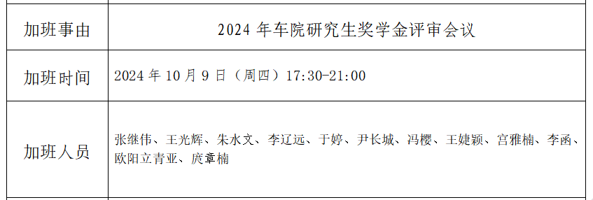华体会体育 2024年车院研究生奖学金评审会议加班误餐公示