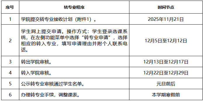 转专业面试时间初步定于2025年12月22日(星期一)进行,其他流程参照学校要求执行。(请提交转专业申请同学加入QQ群:524413821,具体面试时间地点将在群内通知。)