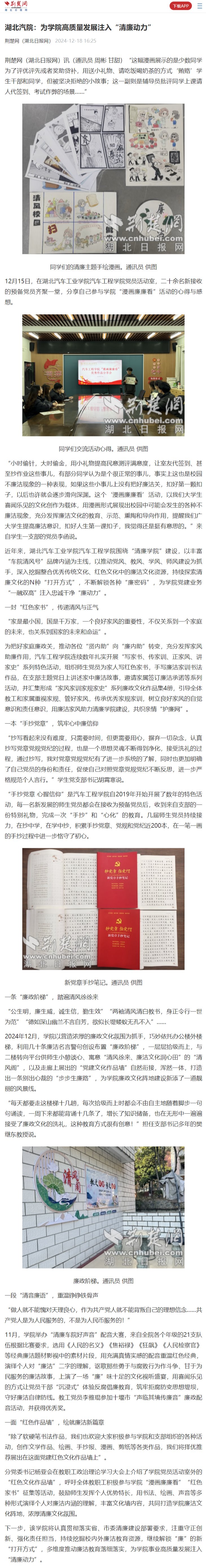 【荆楚网】湖北汽院:为华体会体育 高质量发展注入“清廉动力”