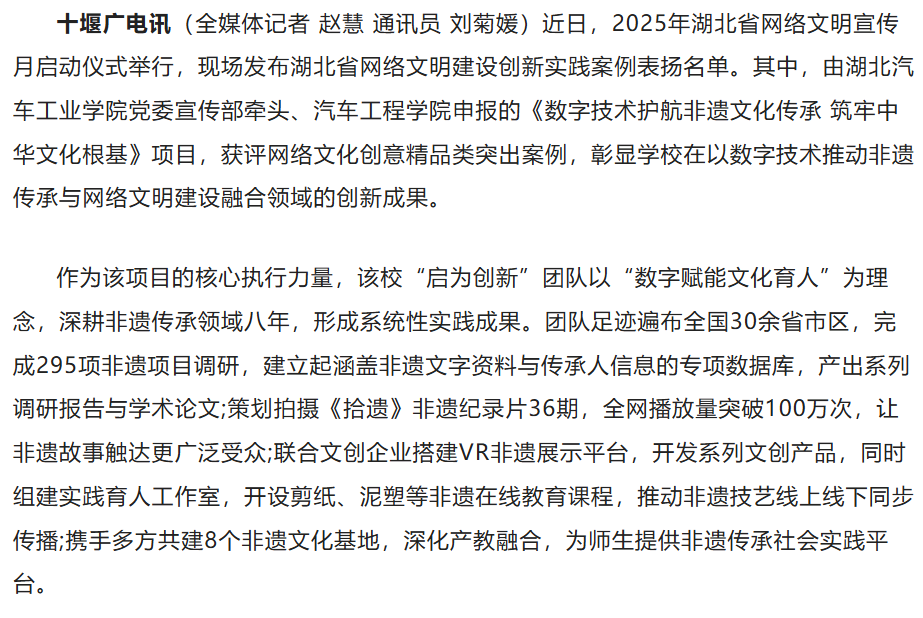 【十堰广电】数字护航非遗!华体会体育 项目入选省级网络文明建设创新案例