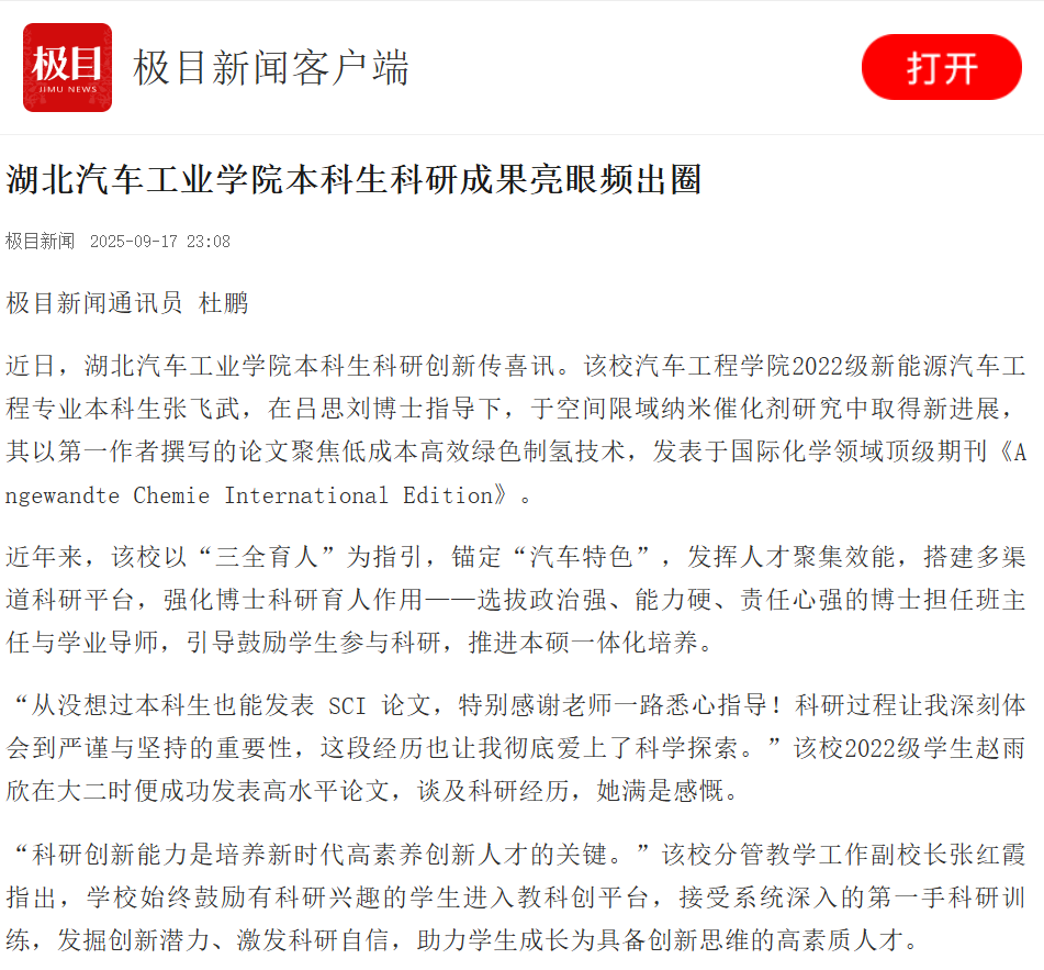 【极目新闻】华体会体育 本科生科研成果亮眼频出圈