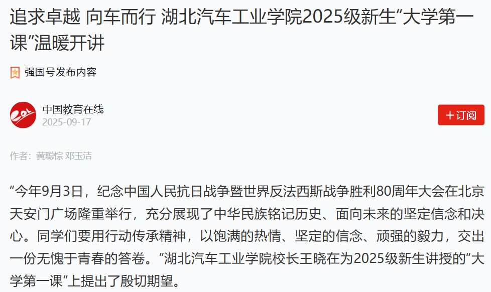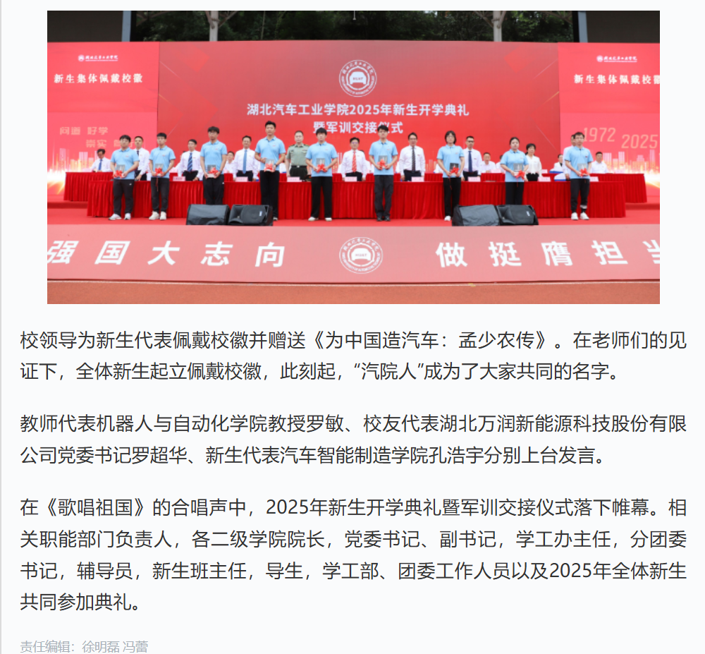 【中国教育在线】追求卓越 向车而行 华体会体育 2025级新生“大学第一课”温暖开讲