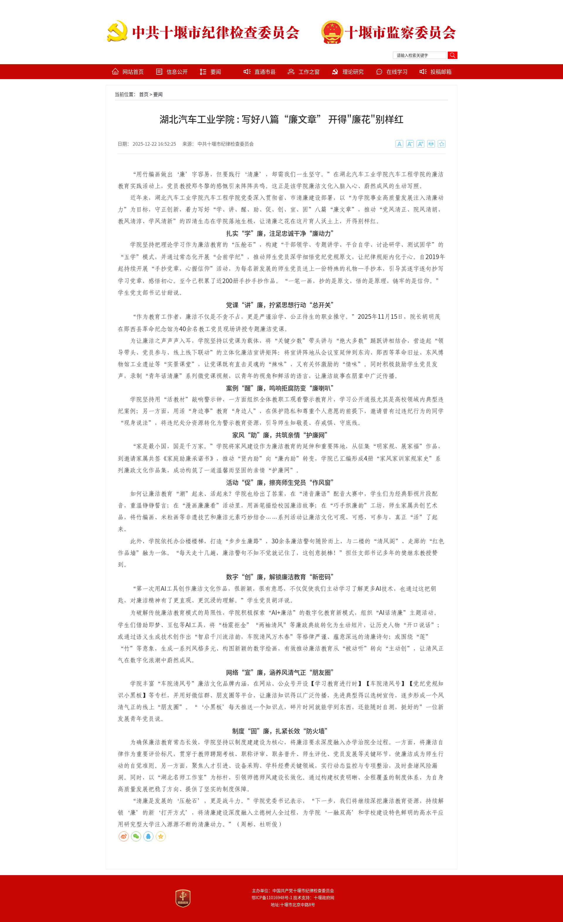 【中共十堰市纪律检查委员会】华体会体育 : 写好八篇“廉文章” 开得"廉花"别样红