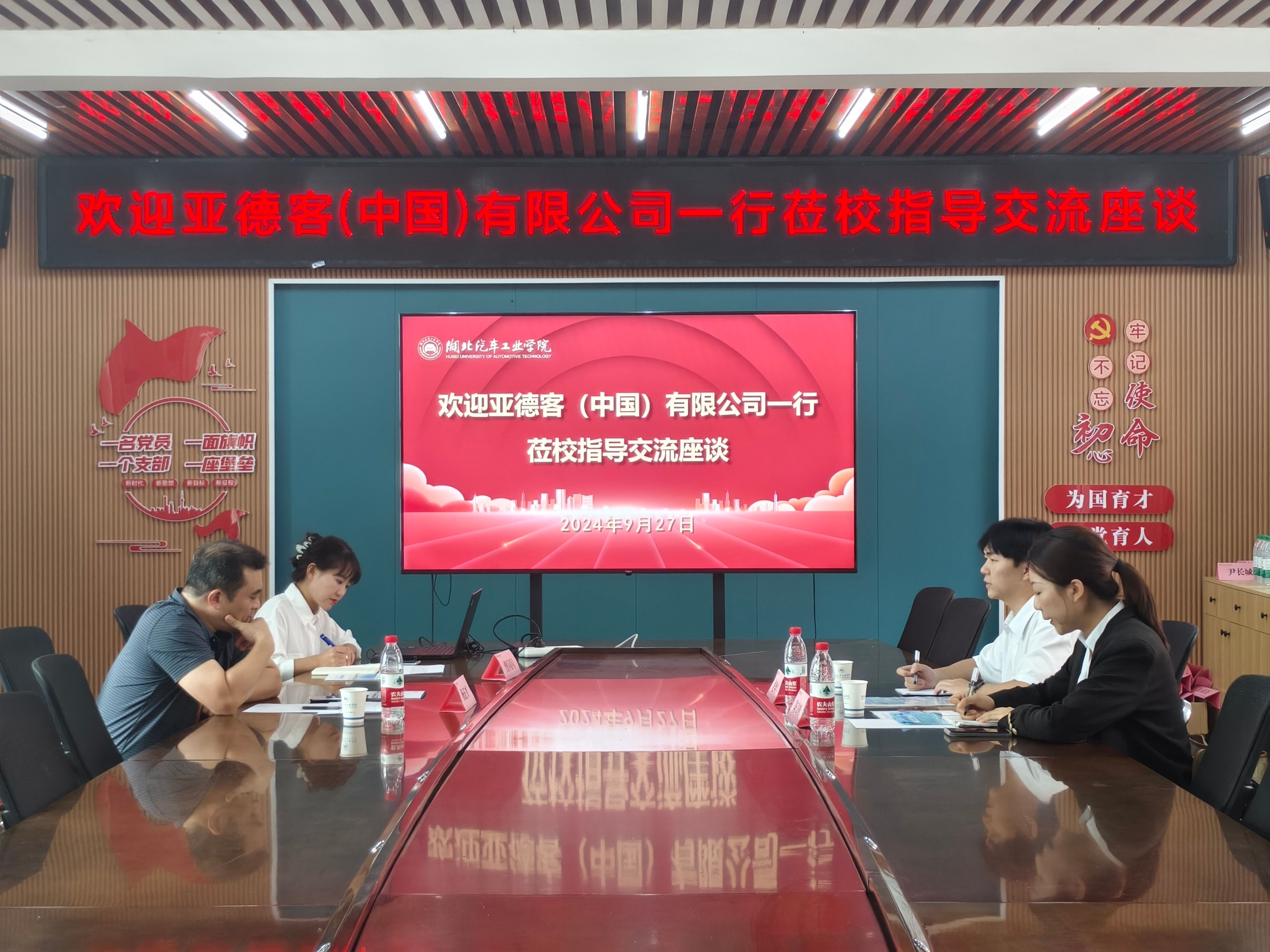 陈奇鹤介绍了亚德客(中国)有限公司目前的岗位需求。双方就深化产教融合、助力就业与培养有机联动、推动汽车行业与高校人才需求精准匹配,共创校企合作双赢局面进行了深入的交流探讨。