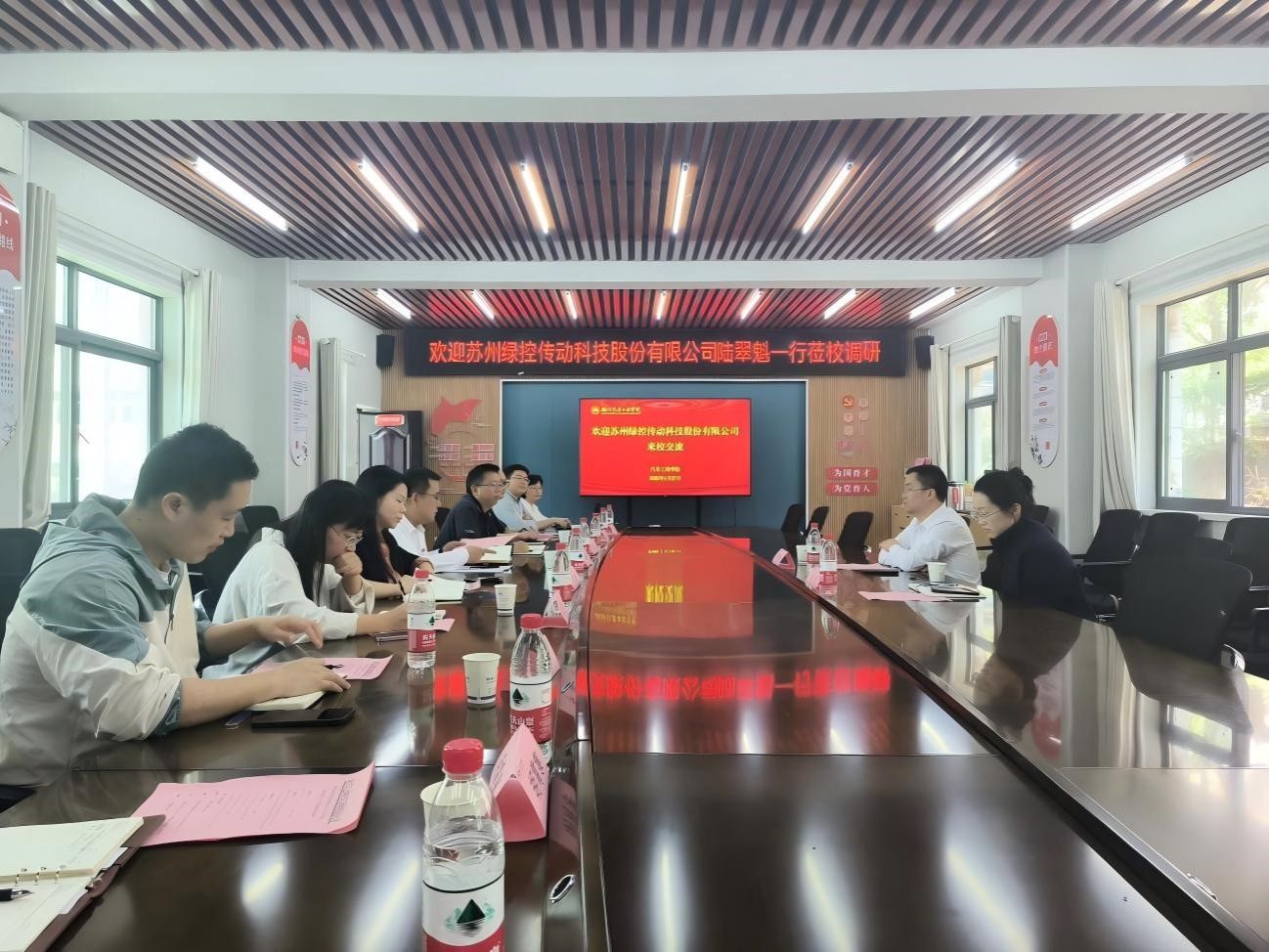 本网讯(文 李函/图 胡霄寒)4月27日上午,苏州绿控传动科技股份有限公司人力资源部总监陆翠魁、培训经理钱程一行来校进行企校联合建设调研交流。华体会体育 党委书记杨亚会、副书记周彬、合作发展处校友服务与基金管理科科长常金星及华体会体育 骨干教师共同参加。