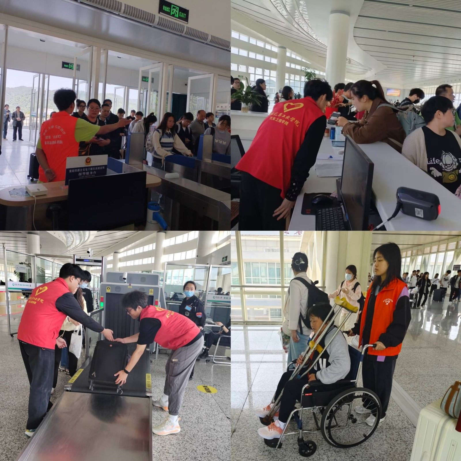 组织二十余名志愿者分别于5月1日和5月5日奔赴十堰高铁站开展“爱在旅途,行李减负”志愿服务活动,助力车站工作人员应对客流高峰,保障“五一”假期有序出行。