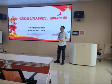 在学院综合楼3204会议室举办了“三全育人、五育并举”三专题研讨的教学法活动。学院本科教学质量监控委员会副主任董焱章副院长主持,校教学督导常治斌教授和冯樱教授、学院本科教学质量监控委员会主任杨亚会书记和教科办李函主任参加,学院全体任课教师参与研讨。十堰市理论宣讲团核心成员马保青老师担任主讲人,为与会者带来了一场精彩的教学法讲座。