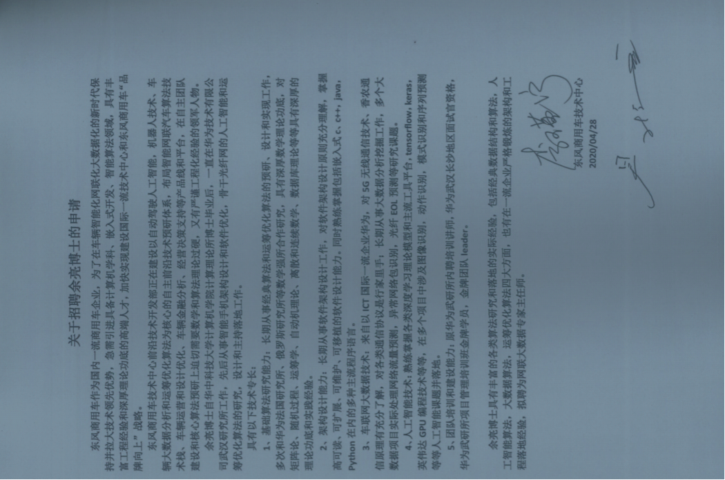 计算机系老师(2004-2007,三年),讲课好得学生不愿意下课;2、博士毕业后就职于华为武汉研究所(2012-2020,七年半),历任华为手机EMUI架构师和光网络AI算法专家,在华为得到过公司级竞赛优胜奖和项目管理金牌学员奖,14项专利;3、东风商用车技术中心(2020-2023,三年),人工智能与大数据专家主任工程师,33项专利,东风集团智能网联技术委员会委员。