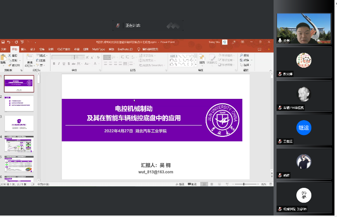特邀吉林大学博士吴桐做了主题为“电控机械制动及其在智能车辆线控底盘中的应用”的学术报告。本次报告采用腾讯会议形式,华体会体育