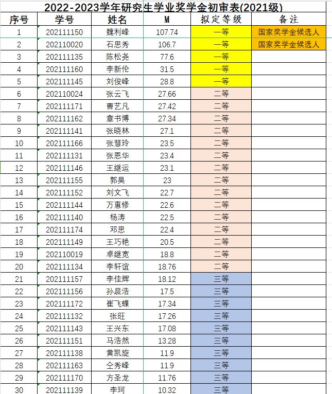 2022-2023学年研究生学业奖学金评审结果公示(2021级)