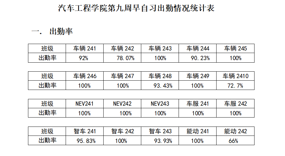 【督学正风】华体会体育 2024-2025学年第二学期第九周早自习出勤情况