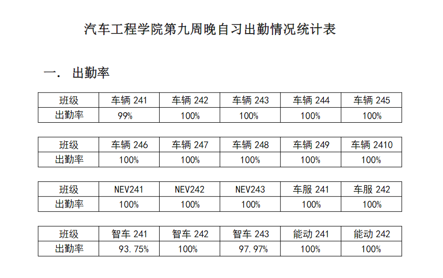 【督学正风】华体会体育 2024-2025学年第二学期第九周早自习出勤情况