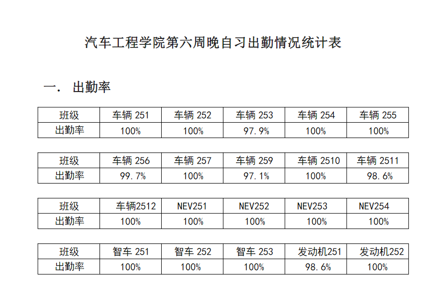 【督学正风】华体会体育 2025-2026学年第一学期第六周早自习出勤情况