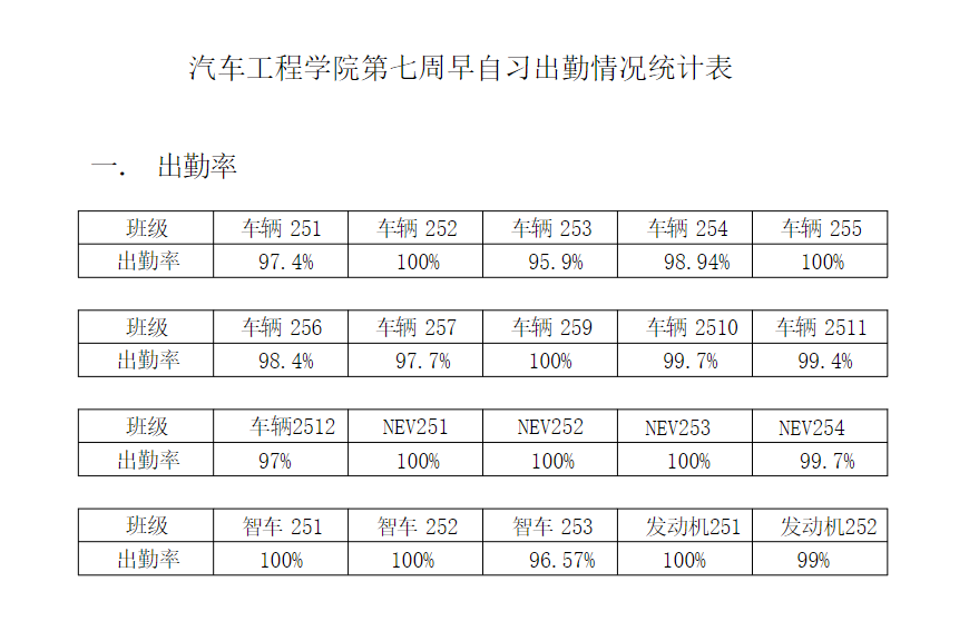 【督学正风】华体会体育 2025-2026学年第一学期第七周早自习出勤情况