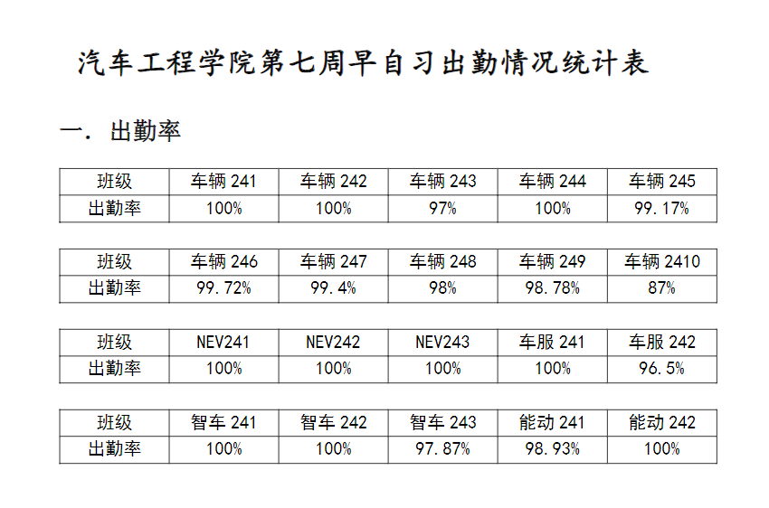【督学正风】华体会体育 2024-2025学年第一学期第七周早自习出勤情况