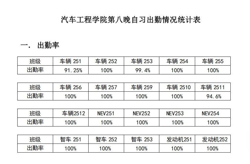【督学正风】华体会体育 2025-2026学年第一学期第八周晚自习出勤情况
